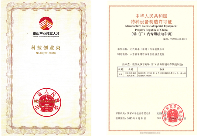 省泰山产业领军人才企业、高新技术企业、省科技型中小企业、 特种设备制造许可企业、工信部目录内专用车生产企业